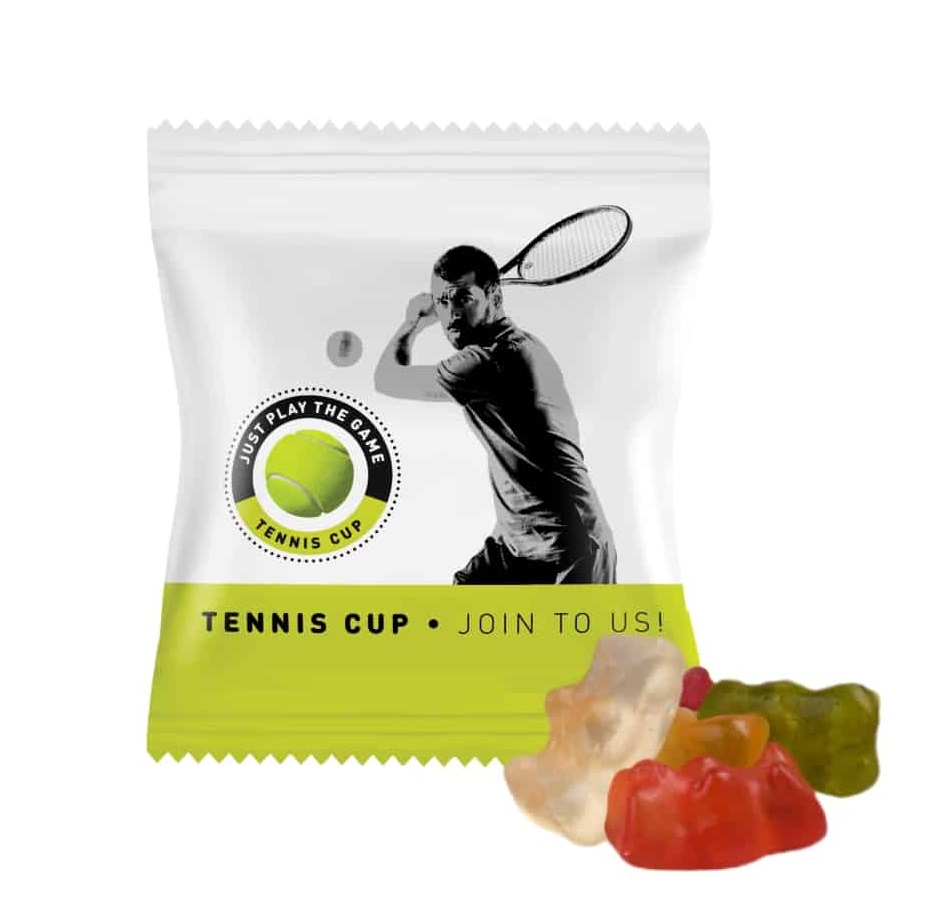 Żelki kultowej marki HARIBO zamknięte w mini saszetce z Twoim brandingiem… To brzmi jak świetny pomysł na poczęstunek dla Twoich pracowników i wspólny powrót do smaków dzieciństwa!