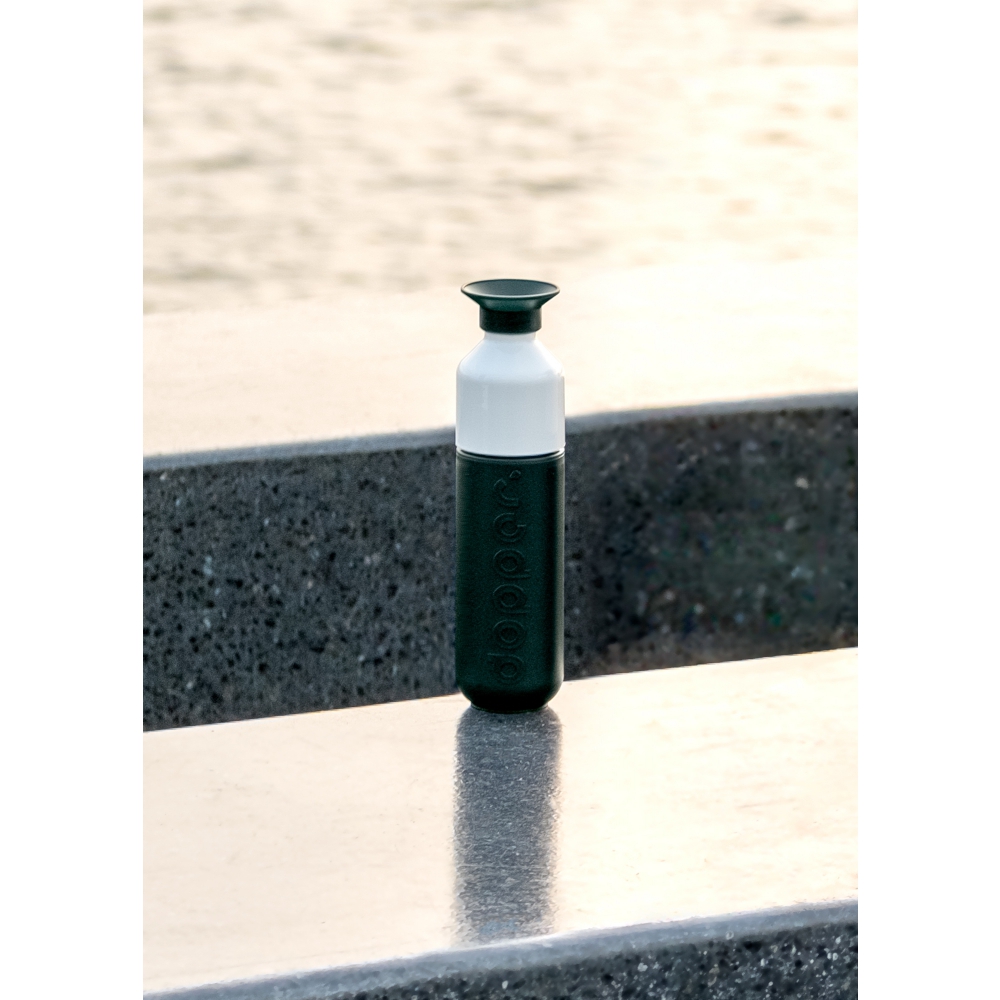 Dbasz o środowisko? Lubisz ładny i praktyczny design? Jeśli tak, to plastikowa butelka wielokrotnego użytku marki Dopper będzie idealnym wyborem. Unikatowy wzór autorstwa Rinke van Remrtela, najwyższej jakości materiały użyte do produkcji (bez BPA i ftalanów) oraz praktyczny kubek ukryty w zatyczce sprawiają, że jest to czego potrzebujesz! Butelka składa się tylko z trzech części - dzięki czemu można bardzo szybko umyć ją ręcznie lub po prostu wrzucić do zmywarki. Warto również dodać, że butelki Dopper stały się bardzo ważną częścią kultury holenderskiej. Zawdzięczają to nie tylko wyjątkowemu wzornictwu i jakości wykonania, ale przede wszystkim misji społecznej. Dzięki używaniu butelek wielokrotnego użytku możemy zmniejszyć ilość odpadów plastikowych. Dodatkowo 5% zysków firmy trafia bezpośrednio do fundacji, która wspiera między innymi projekty związane z dostarczaniem wody pitnej w Nepalu i oczyszczaniu oceanów. Dane techniczne: Pojemność: 450 ml Trzy części, bardzo łatwe do czyszczenia Można myć w zmywarce do 65 ° C / 149 ° F Produkcja holenderska Do ciepłej i zimnej wody Nie nadaje się do napojów mlecznych Materiały: PP - polipropylen ABS (kubek) TPE (uszczelka w zatyczce i kubku) Bez BPA i ftalanów