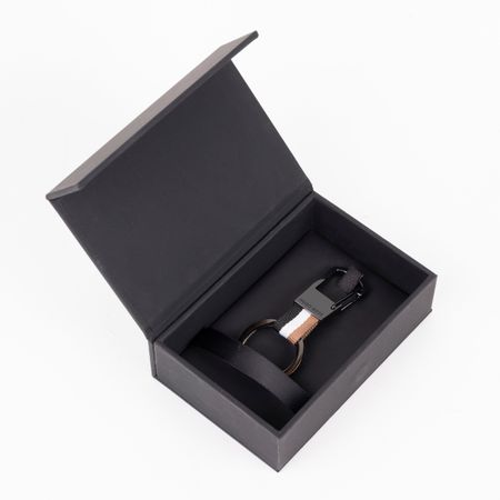 Ten brelok został zaprojektowany, aby uczcić nową markę HUGO BOSS oraz ich graficzne i nowoczesne ikoniczne 3 kolorowe paski. Podpisany trójkolorowy pasek jest wzmocniony luksusowymi chromowanymi akcentami metalowymi, przekształcając codzienne podstawowe rzeczy w nowoczesne akcesoria.