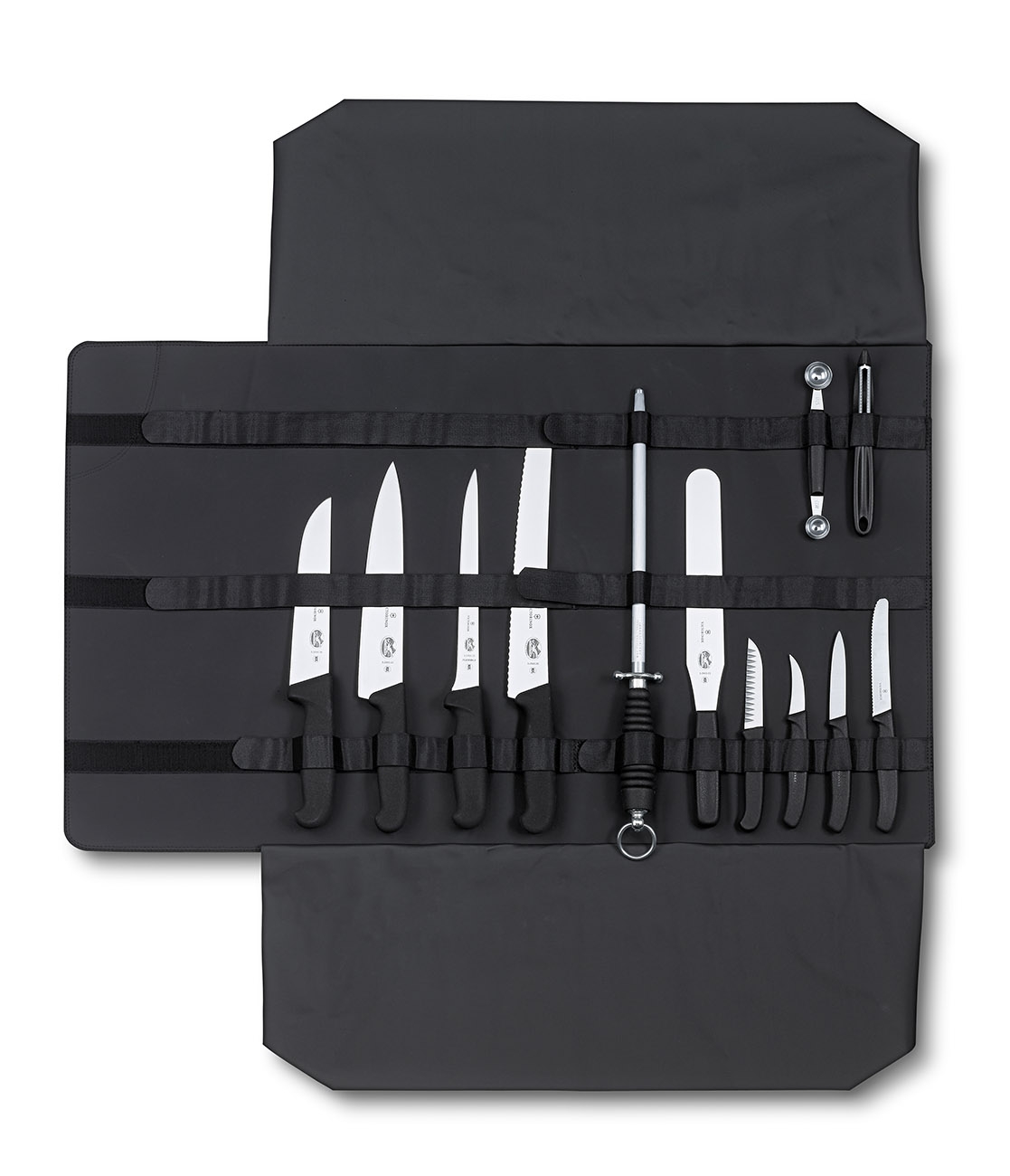 Małe etui na noże kuchenne marki Victroinox. Zdjecie przedstawia rekomendacje rozmieszczenia noży. Kolor: siwy Materiał: polyester Wymiary: Długość (Zamknięte) : 48 cm Długość (Otwarte) : 56 cm Wysokość (Otwarte) : 48 cm