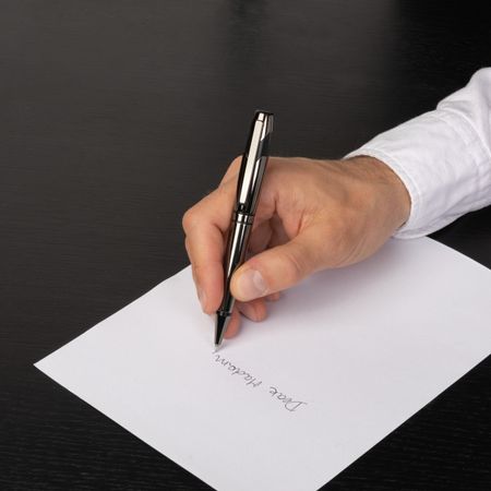 Linia Chevron to współczesna interpretacja ponadczasowego elementu garderoby, inspirowana klasycznym wzorem w jodełkę, charakterystycznym wzorem naszych gotowych ubrań. Dzięki innowacyjnej grze faktur, powstał odważnie nowoczesny przyrząd do pisania. Ta wersja, z czarną, matową, plecioną fakturą i pistoletowymi wykończeniami jest prawdziwą deklaracją luksusu.