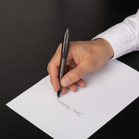 Futurystyczna estetyka, innowacyjne tekstury i współczesna paleta kolorów są podstawą naszych nowych przyborów piśmienniczych Cone. Mocna i wyważona rama pokazuje fachowe rzemiosło i dbałość o szczegóły charakterystyczne dla marki, zaprojektowane z myślą o trwałym stylu. Czarna matowa wersja z kwadratowym grawerunkiem jest wyrazem zaangażowania HUGO BOSS w innowacje w projektowaniu.