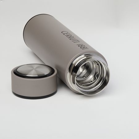 Minimalistyczna butelka termiczna Block delikatna w dotyku i pięknie wyeksponowanym logo Cerruti 1881, idelanie nadaje się do biura lub na trening.