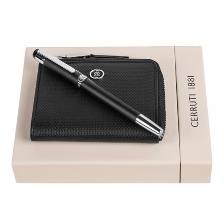 Zestaw upominkowy Cerruti 1881 pióro wieczne i etui na karty - NLE329A + NSQ3292A / Czarny