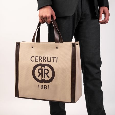 Linia `Hampstead` wykonana jest z płótna i skóry wegańskiej (PU), co stanowi idealne połączenie dla tej ponadwymiarowej torby, która pozwoli Ci nosić wszystkie niezbędne rzeczy i jest tak pojemna, że może być używana jako torba na noc. Ta czarna wersja jest minimalistyczna i łatwa do noszenia, a na jej powierzchni znajduje się nadruk nowego logo CERRUTI 1881.