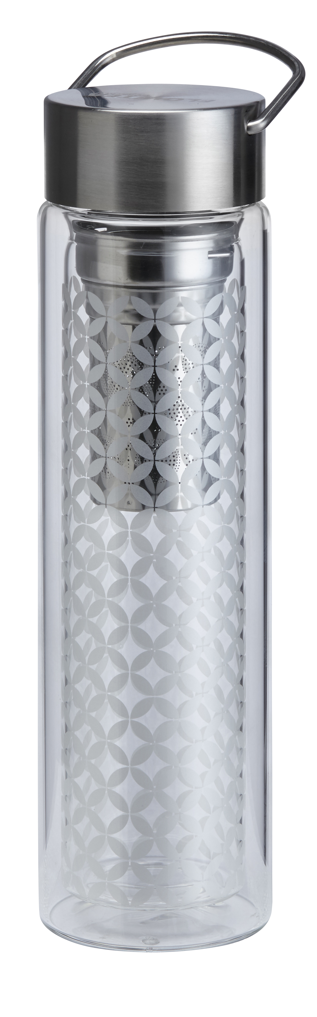 Butelka z podwójną ścianką i zaparzaczem FlowTea 350-400ml May Lin 50012 / Srebrny