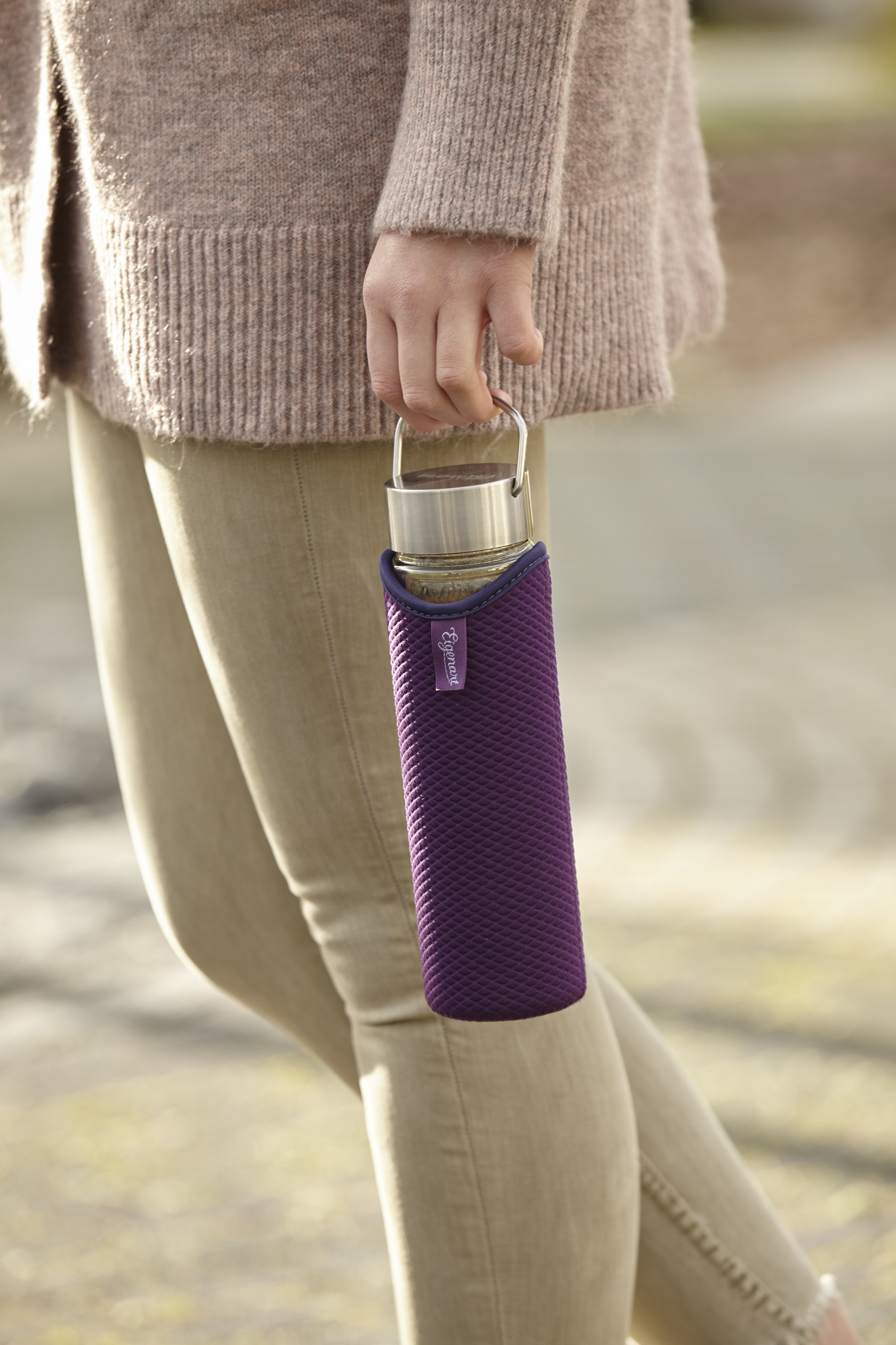 Butelka z podwójną ścianką z serii Flowtea May Lin wykonana jest z wysokiej jakości szkła boro-krzemowego. Posiada wyjmowany, stalowy zaparzacz oraz stalową zakrętkę z uchwytem. Dzięki podwójnym ściankom napój utrzymuje swoją odpowiednią temperaturę przez dłuższy czas. W zestawie znajduje się neoprenowy pokrowiec. Produkt pakowany jest w eleganckie pudełko prezentowe. Pojemność 350-400ml. Zalecane mycie ręczne. Nie należy używać w mikrofalówkach.