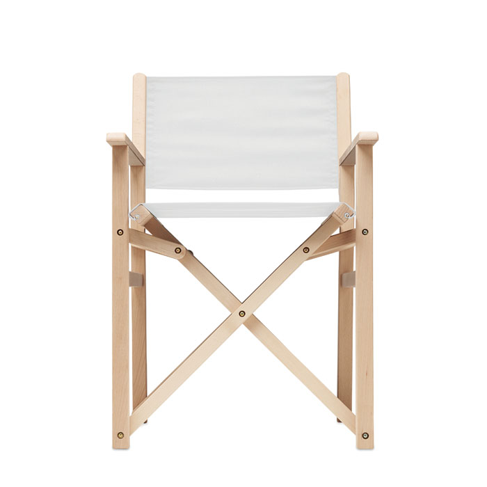 Składane, reżyserskie krzesło drewniane na plażę/kamping ze zdejmowanym siedziskiem z tkaniny poliestrowej. Max: waga 80 kg. Wyprodukowano w UE. Ten przedmiot może być dostarczony tylko w wielokrotności opakowania zewnętrznego zawierającego 2 szt