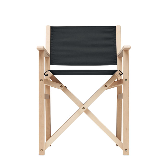 Składane, reżyserskie krzesło drewniane na plażę/kamping ze zdejmowanym siedziskiem z tkaniny poliestrowej. Max: waga 80 kg. Wyprodukowano w UE. Ten przedmiot może być dostarczony tylko w wielokrotności opakowania zewnętrznego zawierającego 2 szt