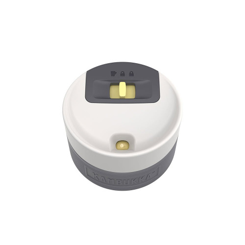 - Pozycja „zablokowana”: zapewnia 100% szczelności. Jeśli ją ustawisz, nie wycieknie ani jedna kropla napoju. Dzięki temu możesz bezpiecznie schować kubek do torby lub plecaka.