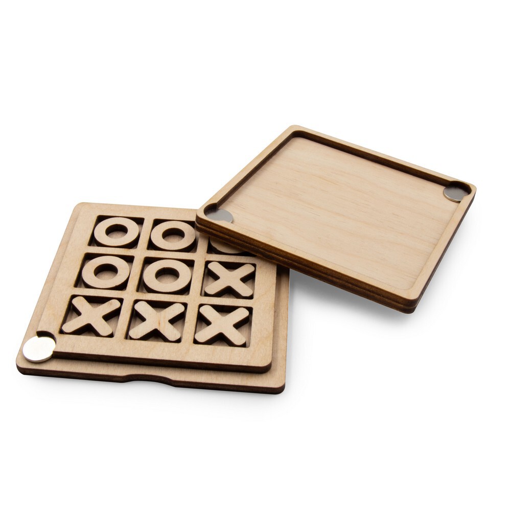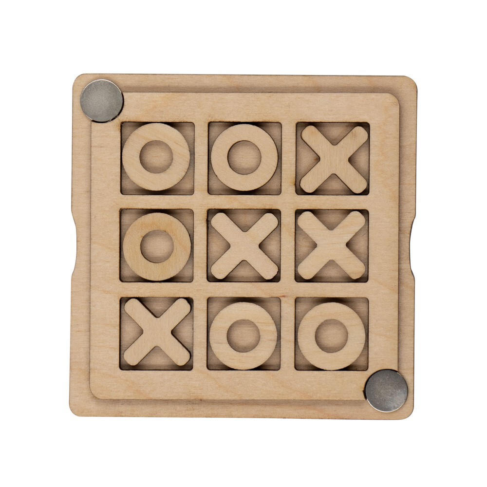 Gra "kółko i krzyżyk", kieszonkowy rozmiar, w drewnianym pudełku zamykanym na magnesy (wyprodukowana w Europie / made in Europe)