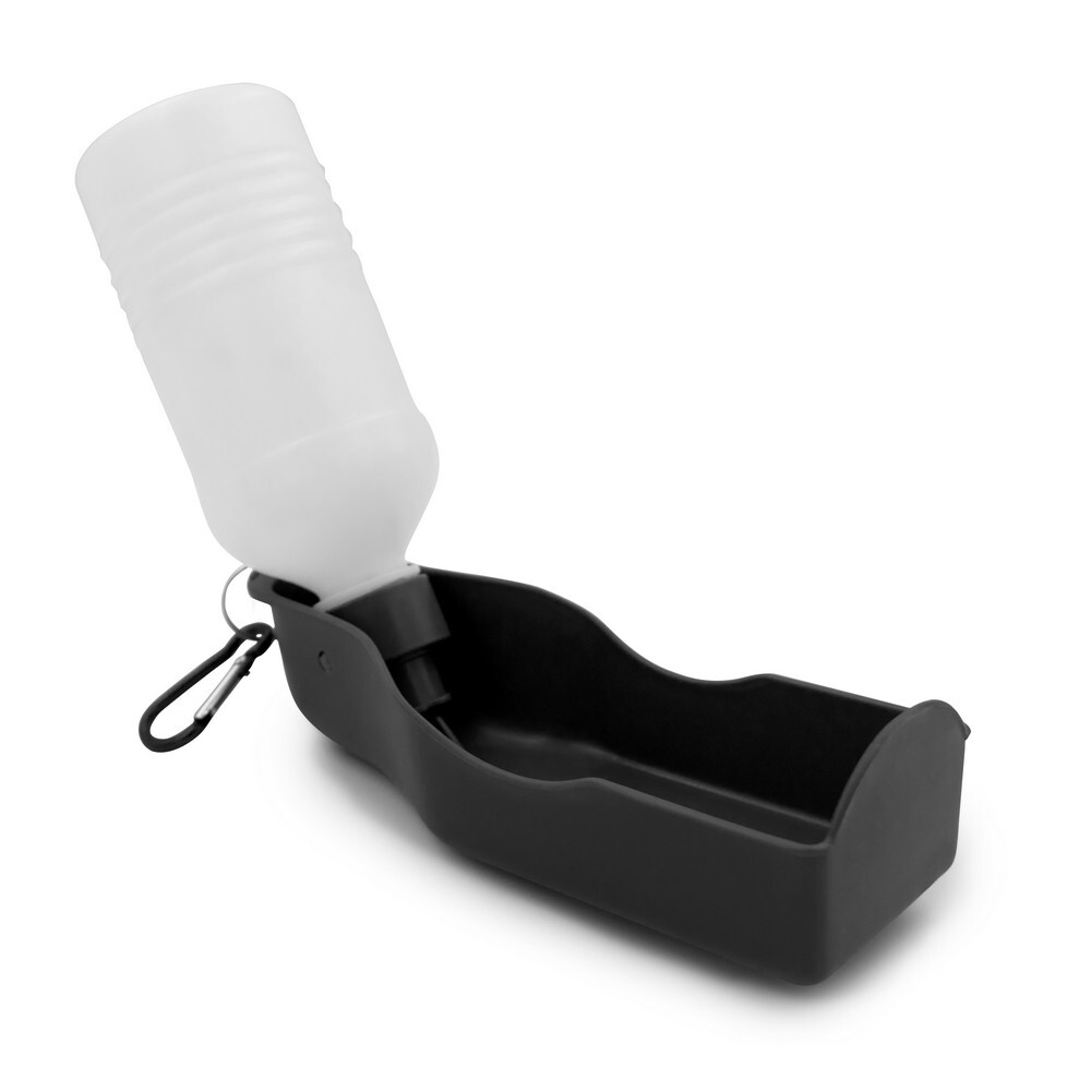 Butelka podróżna dla psa 250 ml, miska na wodę z karabińczykiem | Maud / Czarny