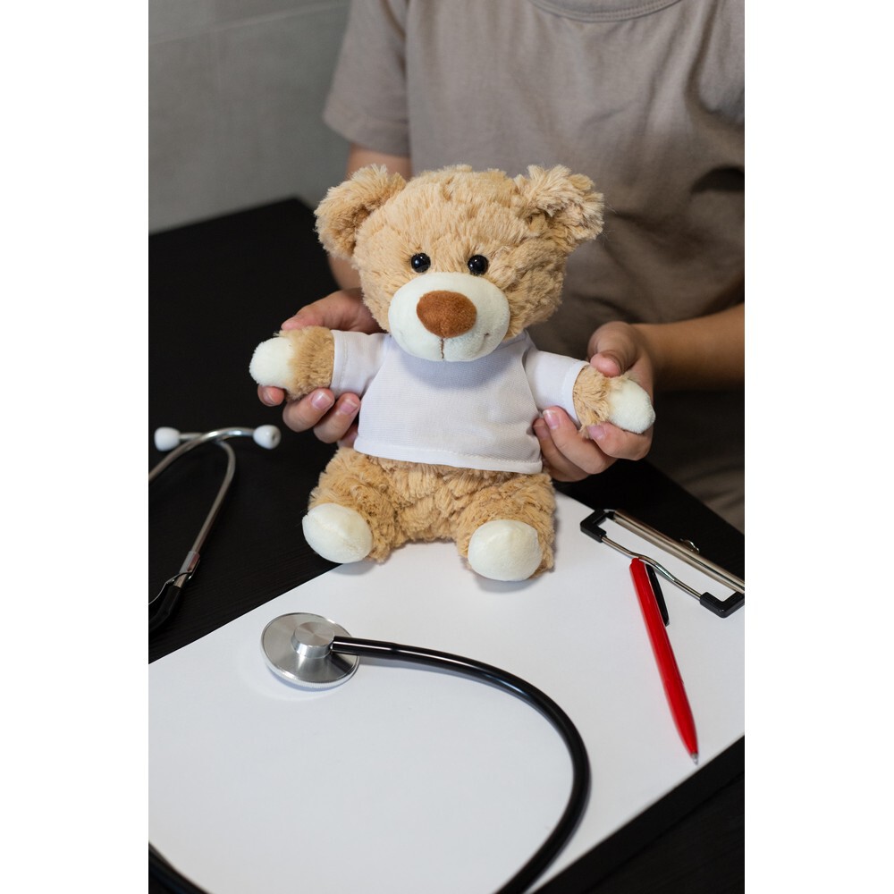 Beżowy miś z białą koszulką pod nadruk (koszulka pakowana oddzielnie)