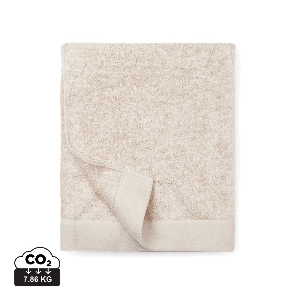 Ręcznik, miękki i solidny, wykonany w 68% z bawełny z certyfikatem BCI i 32% z Tencelu, który jest naturalnym włóknem pozyskiwanym z certyfikowanych lasów i który zapewnia doskonałą chłonność