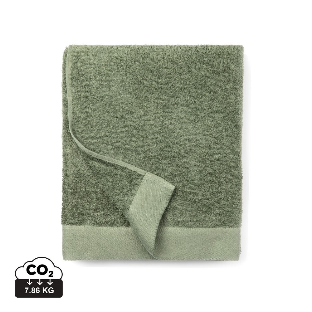 Ręcznik, miękki i solidny, wykonany w 68% z bawełny z certyfikatem BCI i 32% z Tencelu, który jest naturalnym włóknem pozyskiwanym z certyfikowanych lasów i który zapewnia doskonałą chłonność