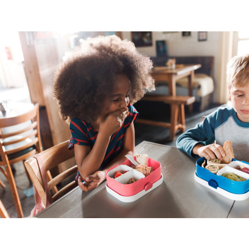 Piękny, a zarazem praktyczny, dziecięcy lunchbox marki Mepal to idealny pojemnik na kanapkę dla dziecka do szkoły czy na wycieczkę. Pojemnik posiada dodatkowy wkład przeznaczony na warzywa lub owoce, po jego wyjęciu pomieści do 4 kanapek. Jest łatwy w utrzymaniu czystości - nadaje się do mycia w zmywarce, w zestawie również jest mały widelczyk. Wysoka jakość wykonania, żywe barwy to atuty tego pudełka na posiłki dla najmłodszych. Wszystkie produkty Mepal wolne są od BPA oraz wykonane z materiałów nieszkodliwych dla zdrowia. Wyprodukowano w Holandii