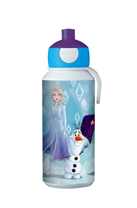 Zestaw składający się z pudełka śniadaniowego i butelki ozdobiony efektownym, kolorowym motywem bohaterów Krainy Lodu.