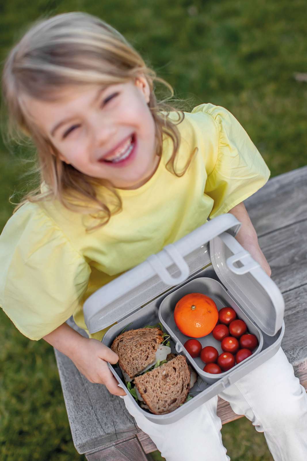 Lunchbox Pascal s to pudełko śniadaniowe doskonale nadające się na kanapki, owoce, warzywa. Będzie przydatne gdy chcemy zabrać świeży posiłek do szkoły, pracy, na wycieczkę. Posiada wygodne zamykanie i jest łatwe do umycia. Dwa pudełka w rozmiarze s idealnie pasują do lunchboxa w rozmiarze l, dzięki czemu możemy transportować poszczególne artykuły spożywcze odseparowane od siebie a jednocześnie wygodnie w jednym większym pojemniku. Wykonany z nowatorskiego, przyjaznego dla środowiska tworzywa sztucznego Organic, w kórego skład wchodzi celuloza - w 100% podlega recyclingowi.