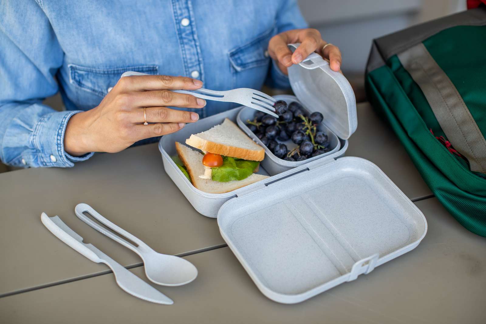 Lunchbox Pascal s to pudełko śniadaniowe doskonale nadające się na kanapki, owoce, warzywa. Będzie przydatne gdy chcemy zabrać świeży posiłek do szkoły, pracy, na wycieczkę. Posiada wygodne zamykanie i jest łatwe do umycia. Dwa pudełka w rozmiarze s idealnie pasują do lunchboxa w rozmiarze l, dzięki czemu możemy transportować poszczególne artykuły spożywcze odseparowane od siebie a jednocześnie wygodnie w jednym większym pojemniku. Wykonany z nowatorskiego, przyjaznego dla środowiska tworzywa sztucznego Organic, w kórego skład wchodzi celuloza - w 100% podlega recyclingowi.