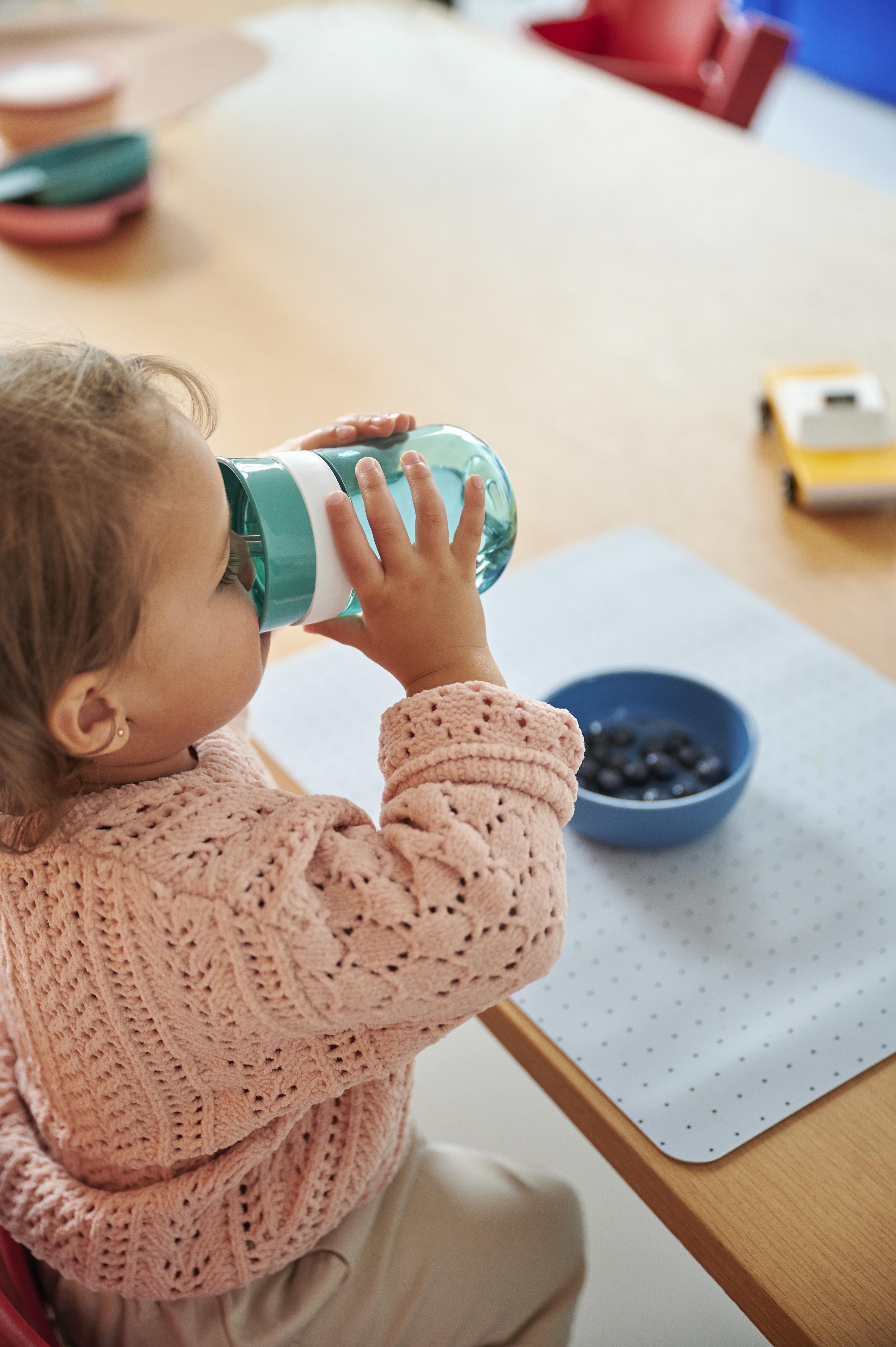 • Przezroczysta pokrywka uczy dziecko, jak wziąć łyk w odpowiednim momencie oraz zapobiega wylewaniu się napoju.