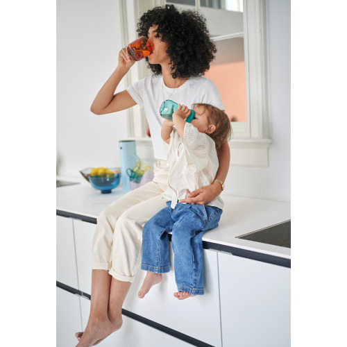 • Przezroczysta pokrywka uczy dziecko, jak wziąć łyk w odpowiednim momencie oraz zapobiega wylewaniu się napoju.