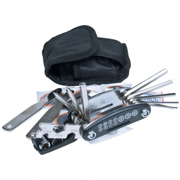 Zestaw narzędzi do naprawy usterek rowerowych / Czarny