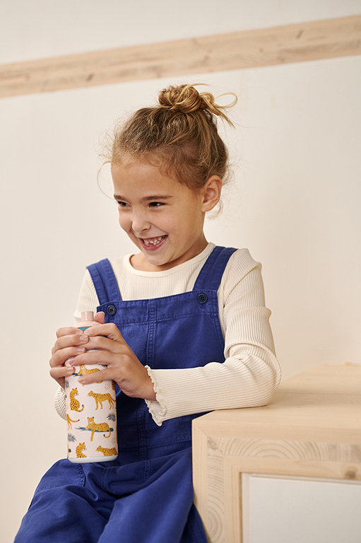Woda, herbata słodzona miodem czy świeżo wyciśnięty sok - w tej wielokrotnego użytku butelce, pozwoli zmniejszyć spożywanie przez dziecko niezdrowych, słodkich napojów gazowanych, jak również kupowanie plastikowych butelek, realnie przyczyniając się do ograniczenia odpadów, tym samym wyrabiając u najmłodszech proekologiczne zachowania.