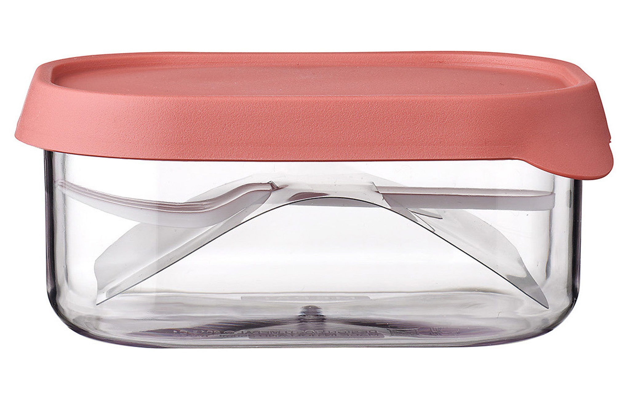 Posiada transparentny korpus wykonany z trwałego i odpornego na uszkodzenia mechaniczne tworzywa sztucznego, dopasowaną, ergonomiczną pokrywę z wypustką ułatwiającą otwieranie i zamykanie, dodatkowo wyposażone jest w widelczyk, dlatego możemy cieszyć się zdrową, pełną witamin przekąską w każdym miejscu - w podróży, pracy lub szkole.