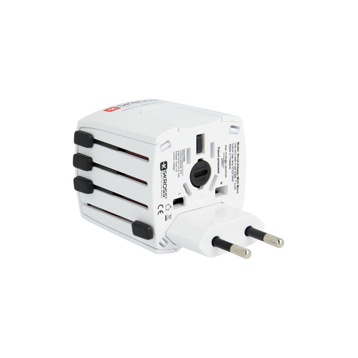 Adapter Podróżny MUV Micro ma wielkość tylko 5cm na 5cm, co czyni go najmniejszym, dwubiegunowym adapterem dla podróżujących.   Za pomocą Adaptera Podróżnego MUV Micro, podróżni z całego świata mogą bezpiecznie podłączyć swoje urządzenia w ponad 150 krajach. System suwaków opracowany i opatentowany przez SKROSS daje użytkownikowi możliwość łatwego podłączenia do większości gniazdek na całym świecie.