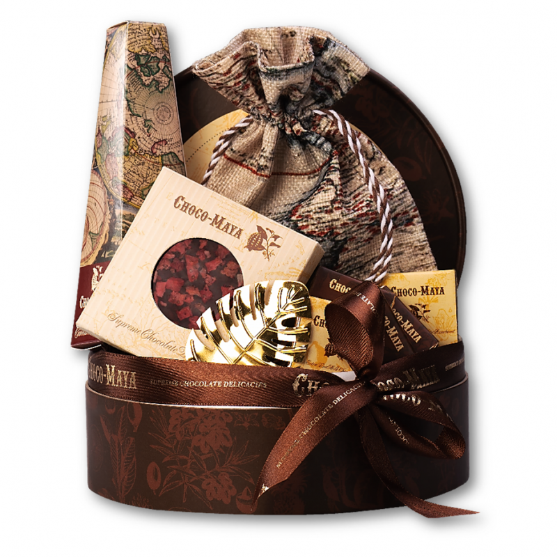 Papierowa tuba kryjąca asortyment kolonialnych produktów Choco Maya: