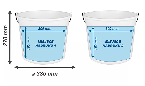 Możliwość wykonania indywidualnego, nieścieralnego nadruku dookoła wiadra. Wiaderko wraz z nadrukiem, stanowi doskonały nośnik reklamy dla klientów wielu branż oraz kampanii społecznych. Pojemnik jest dostępny w kilku kolorach.