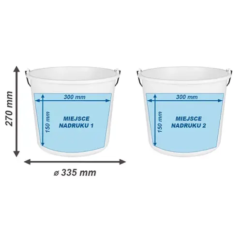 Możliwość wykonania indywidualnego, nieścieralnego nadruku dookoła wiadra. Wiaderko wraz z nadrukiem, stanowi doskonały nośnik reklamy dla klientów wielu branż oraz kampanii społecznych. Pojemnik jest dostępny w kilku kolorach.