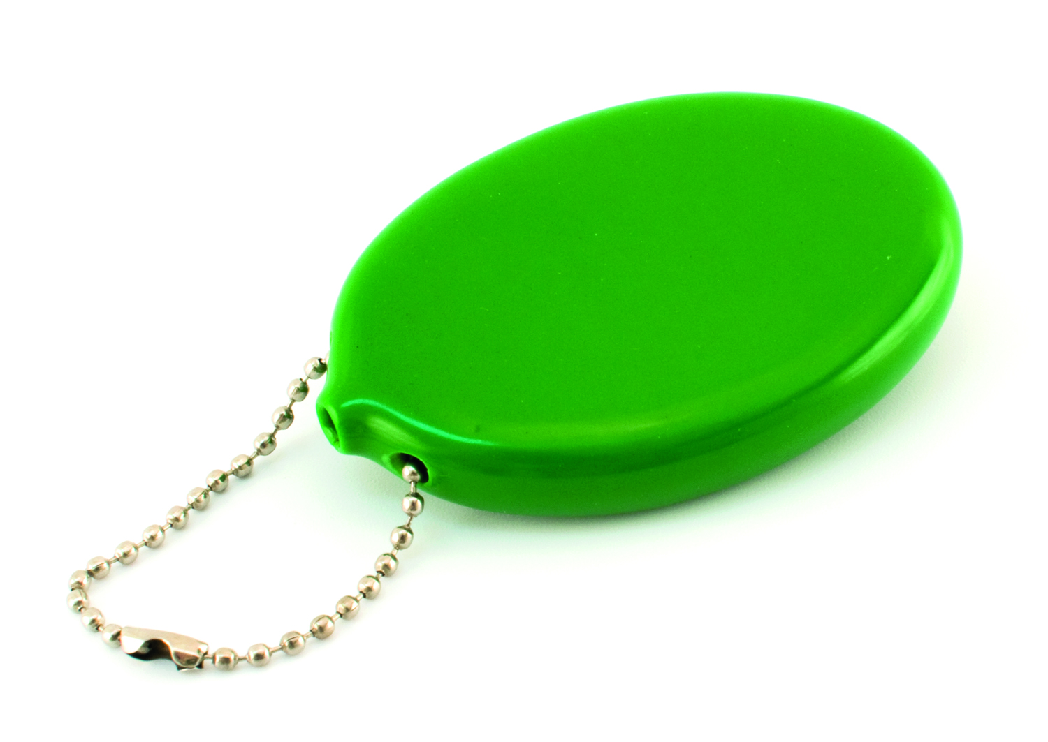 Praktyczne etui na drobne monety wykonane jest z PCV. Do woreczka przymocowana jest łańcuszek, dzięki któremu woreczek może też służyć jako brelok.