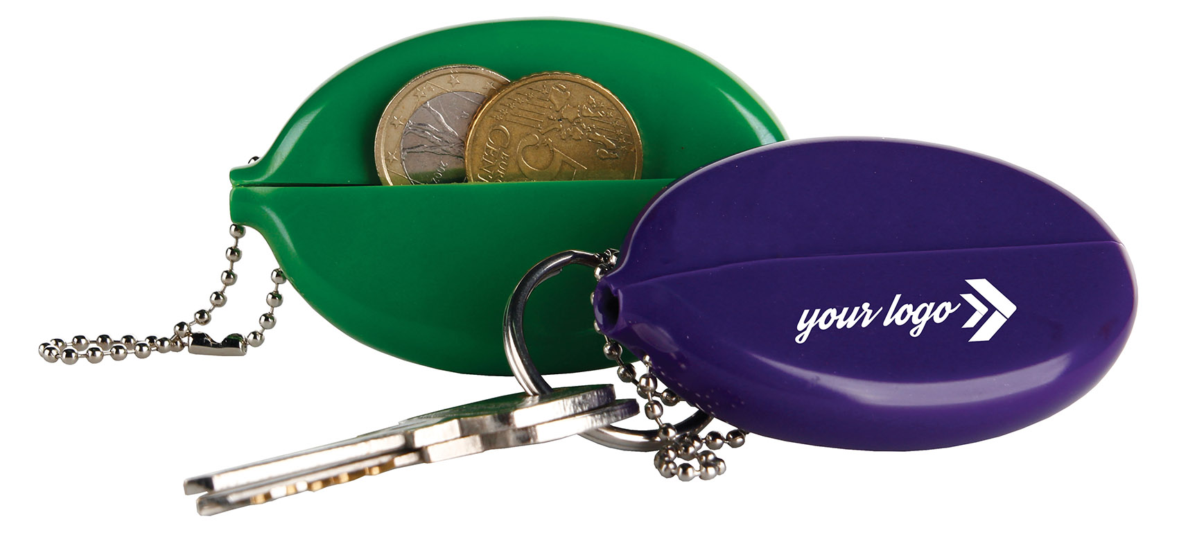 Praktyczne etui na drobne monety wykonane jest z PCV. Do woreczka przymocowana jest łańcuszek, dzięki któremu woreczek może też służyć jako brelok.