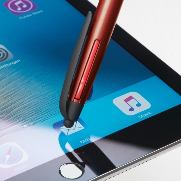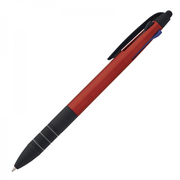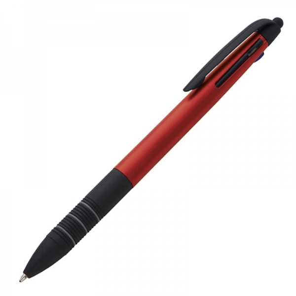 Długopis plastikowy 3w1 z wkładami: czerwonym, czarnym i niebieskim. Wyposażony w touch pen, uchwyt wykończony gumą. Produkt dostępny w kilku kolorach.