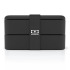 - lunchbox złożony z: pokrywki głównej, 2 pojemników z pokrywkami dodatkowymi z uszczelkami antybakteryjnymi, pojemniczka, 2 silikonowych nasadek oraz gumki spinającej,