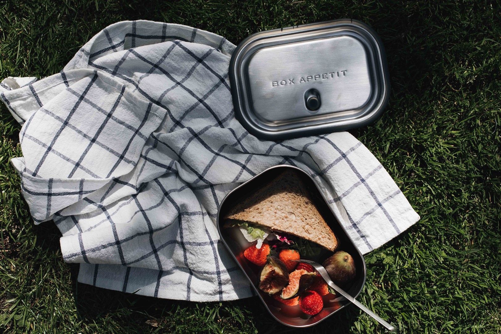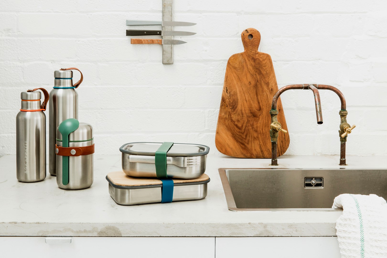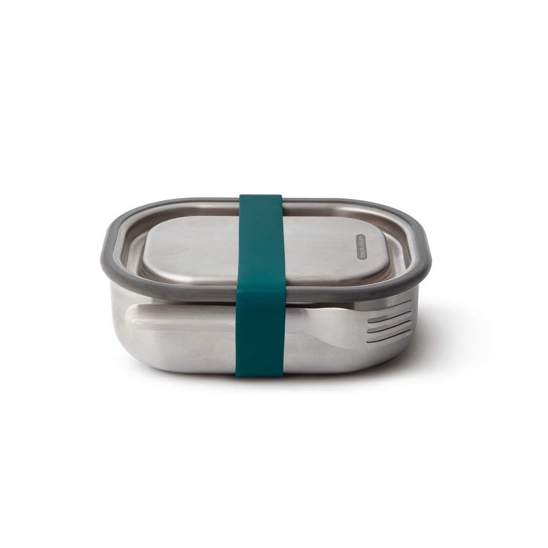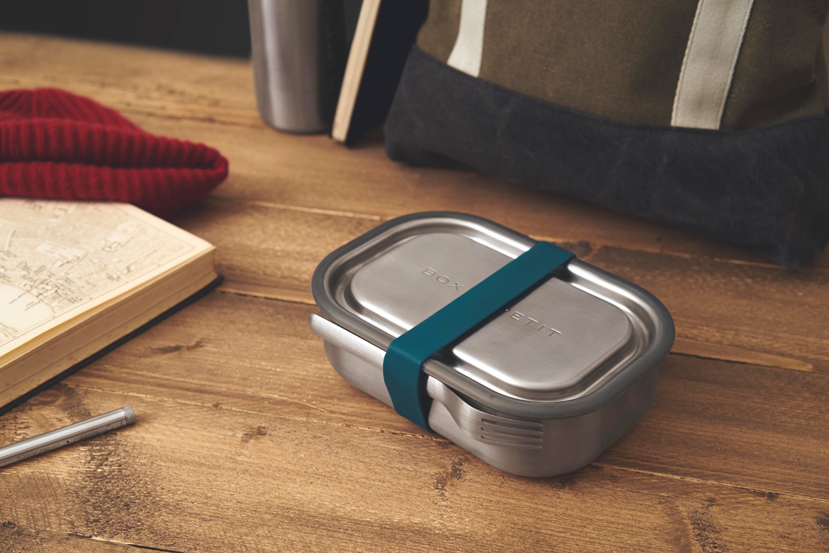 - lunch box wykonany ze stali nierdzewnej i wyposażony w silikonowy pasek przytrzymujący,