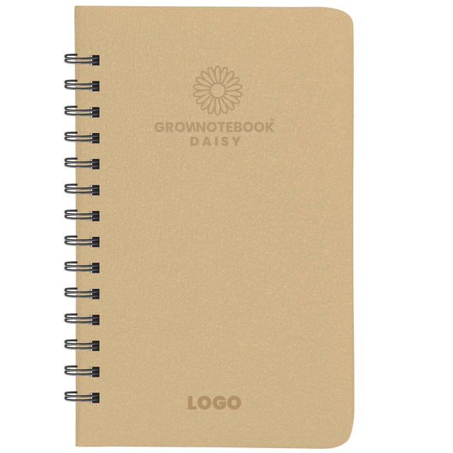 Notatnik Grow na spirali w formacie A5 to ekologiczna alternatywa dla standardowych notatników. Okładka pokryta jest gładkim certyfikowanym papierem. Kartki notatnika wykonane są z papieru z certyfikatem FSC i mają zaokrąglone brzegi dla komfortu użytkowania. Każdy egzemplarz zawiera nasiona, przyczepione do wewnętrznej strony okładki.