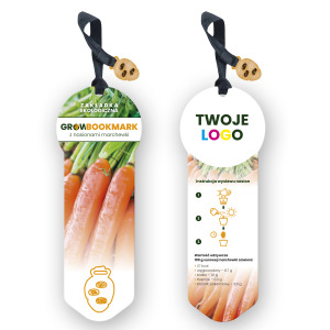 GrowBookmark to ekologiczna zakładka wykonana z papieru z recyklingu lub kraftowego, z tasiemką zakończoną zawieszką w wybranym kształcie, z nasionami. Zakładka może być w wersji standardowej - ze szczegółową instrukcją sadzenia nasion i miejscem na Twoje LOGO lub w wersji indywidualnego projektu.