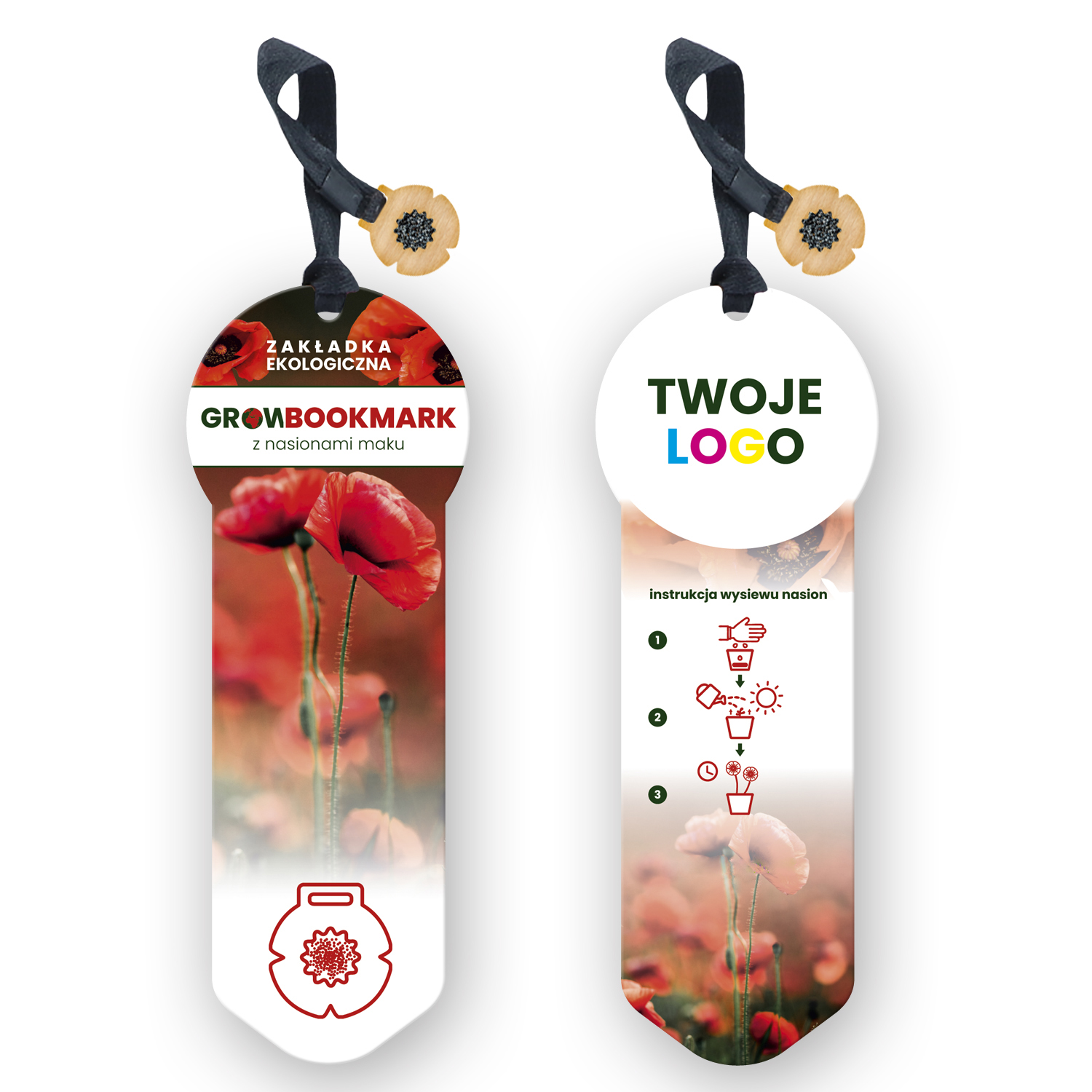 GrowBookmark to ekologiczna zakładka wykonana z papieru z recyklingu lub kraftowego, z tasiemką zakończoną zawieszką w wybranym kształcie, z nasionami. Zakładka może być w wersji standardowej - ze szczegółową instrukcją sadzenia nasion i miejscem na Twoje LOGO lub w wersji indywidualnego projektu.