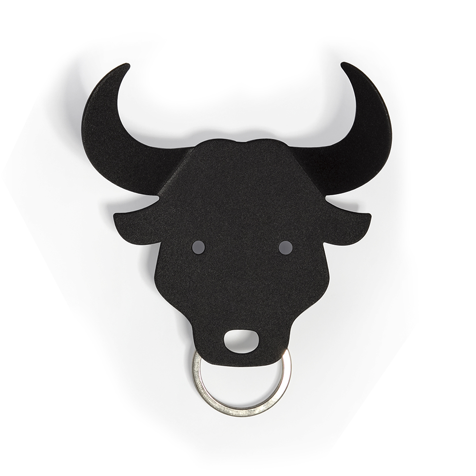 Wieszak na klucze z wizerunkiem byka zapewni ład i porządek w Twoich kluczach i innych drobnych akcesoriach. Dzięki magnetycznej sile pyszczka/nosa, klucz zostanie umieszczony wedle naszej fatnazji jakby był ozdobą na głowie zwierzęcia.