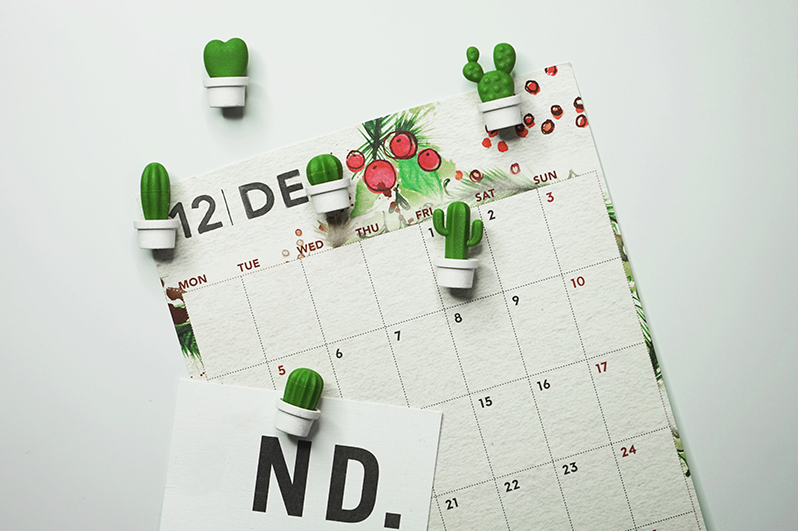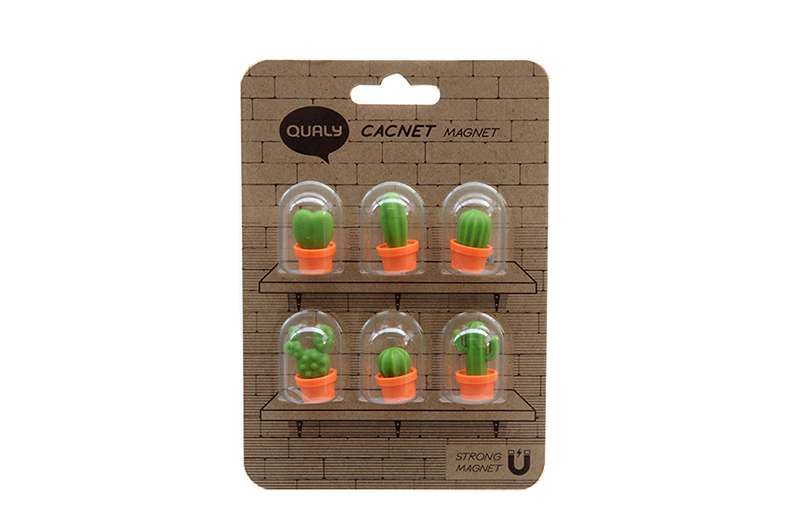 Zestaw 6 niebanalnych magnesów w kształcie kaktusów w doniczkach.