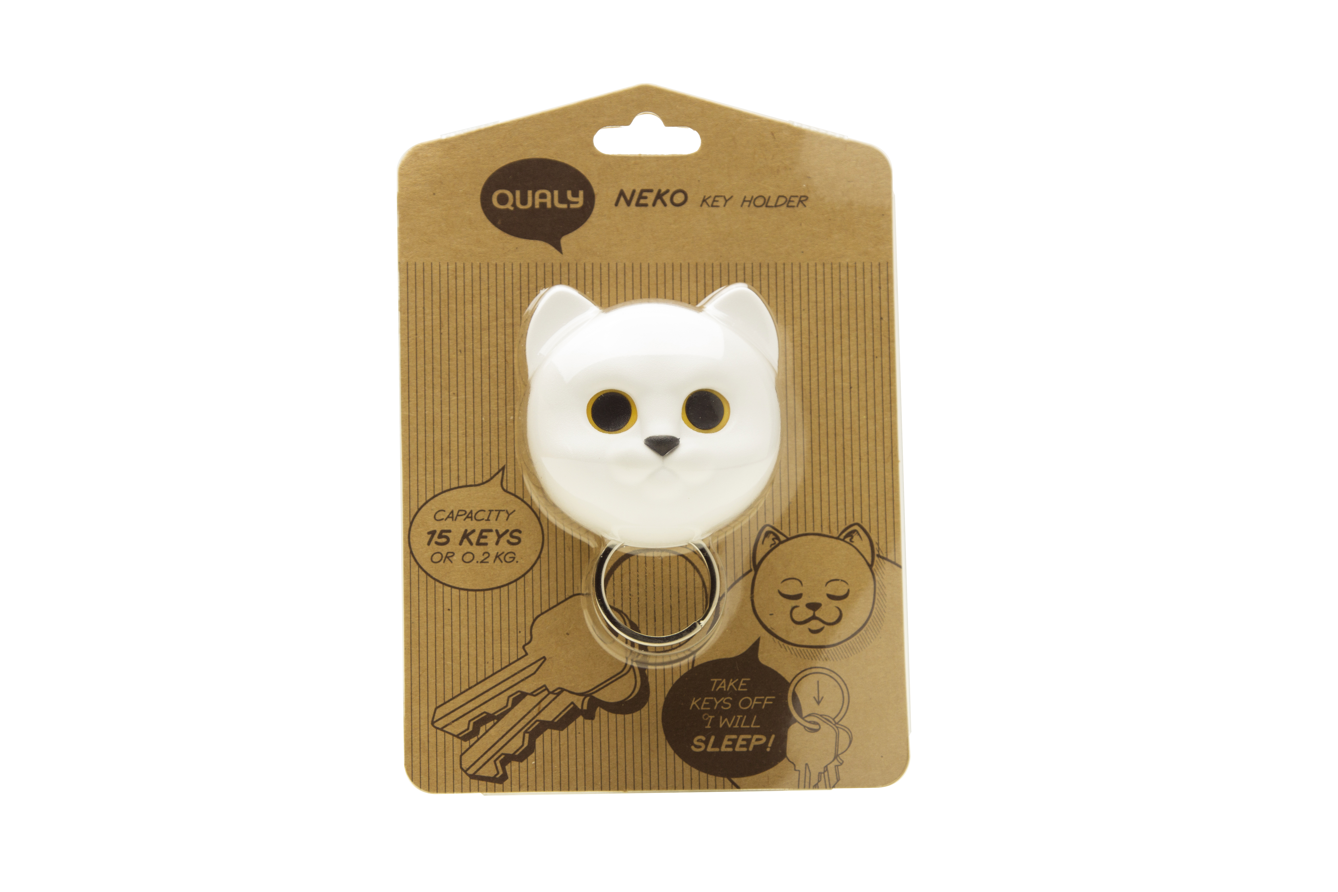 Kot kocha Cię bardziej niż siebie samego, Neko otworzy oczy, aby Twoje klucze były bezpieczne. Zwykle śpi cały dzień, ale kiedy włożysz klucze pod jego szyję, będzie gotów, aby się nimi zaopiekować, bo to właśnie robi prawdziwy kumpel.