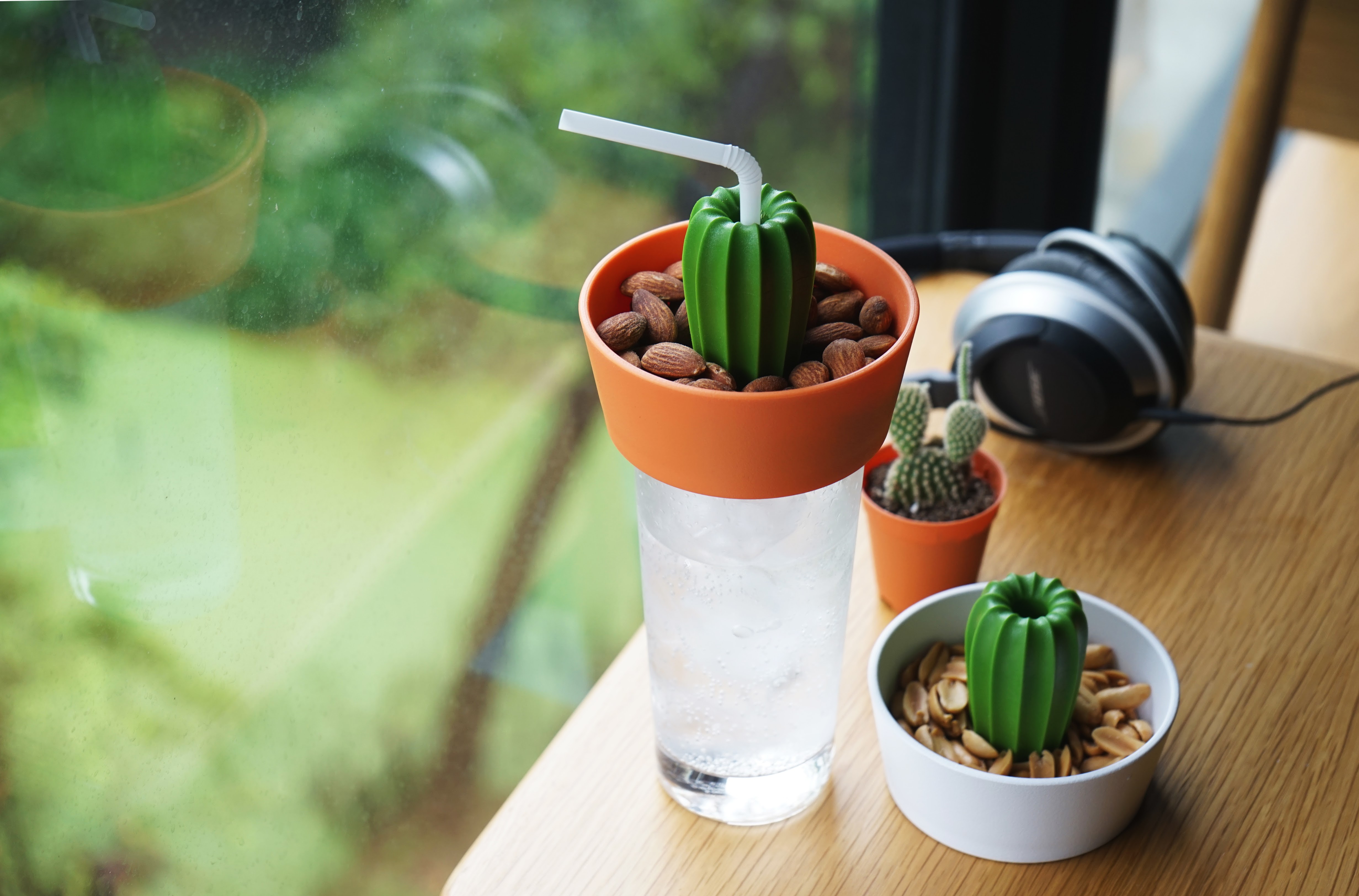 Ten dwufunkcyjny Cacnuts pozwoli Ci na to. Po prostu umieść go na szklance, włóż słomkę (najlepiej ekologiczną) i ciesz się swoim napojem i smakołykami.