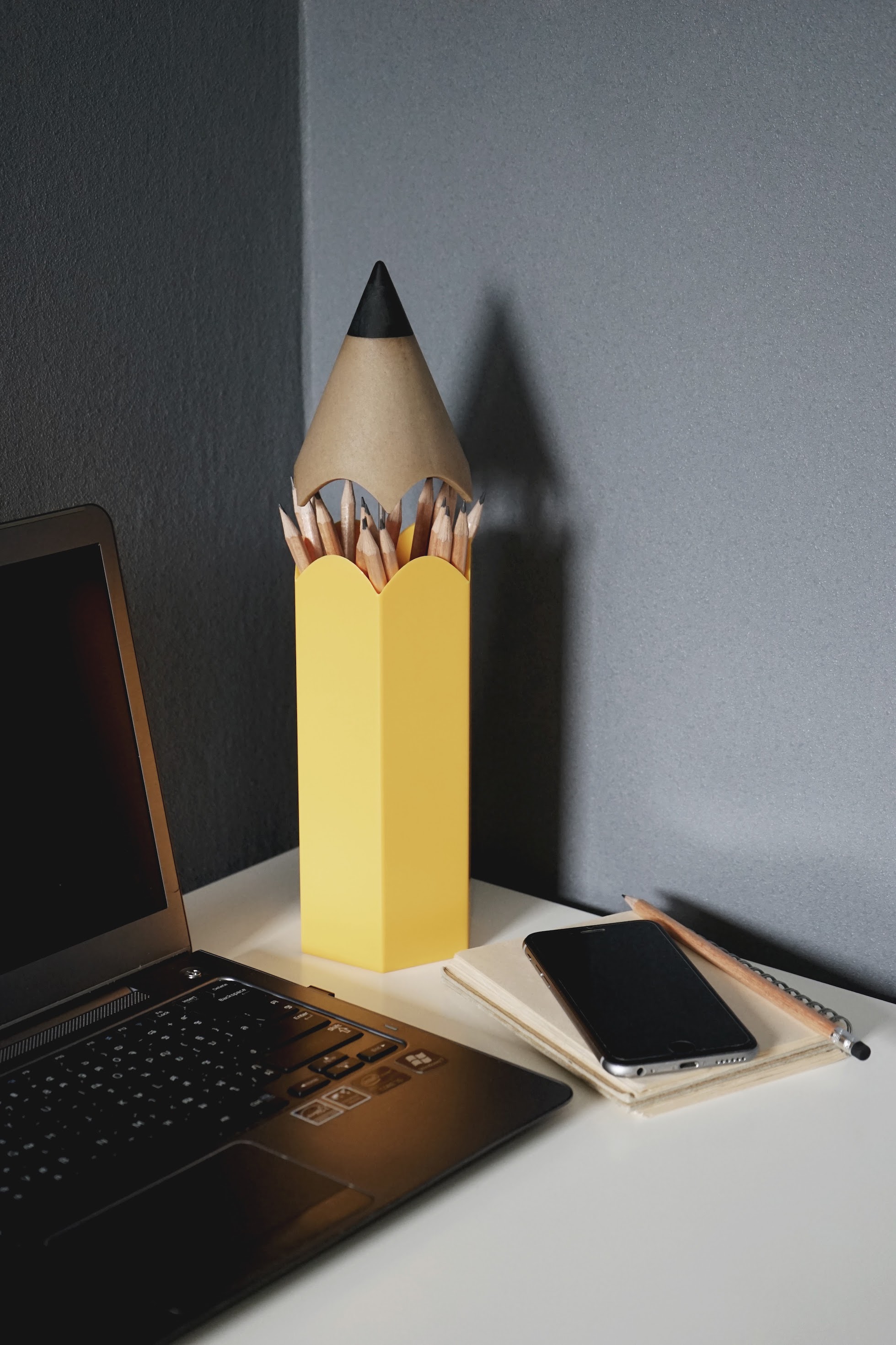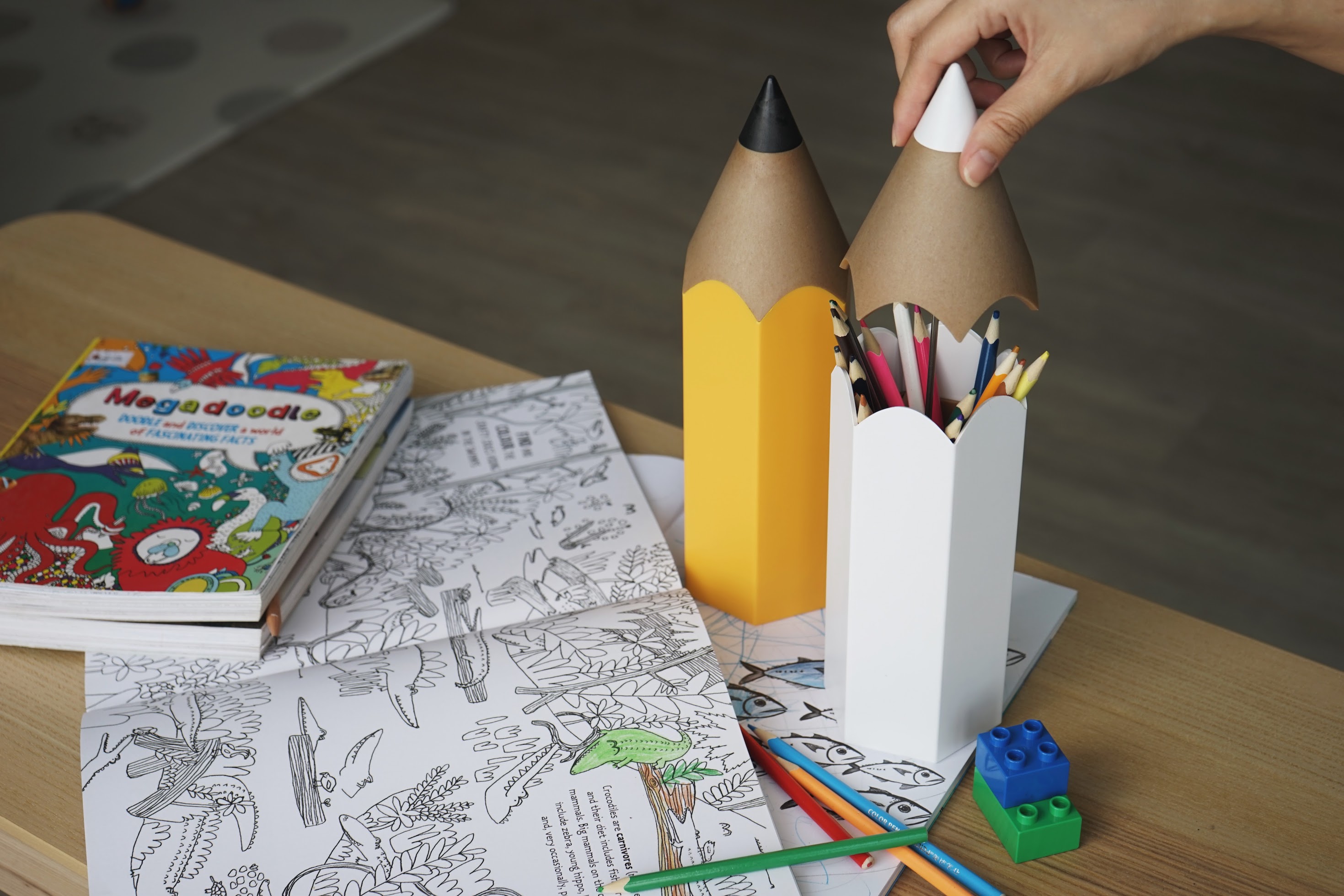 Ten kolorowy pojemnik pomieści Twoje kredki i inne drobne akcesoria, a dodatkowo stanowić będzie ciekawą dekorację na biurku.