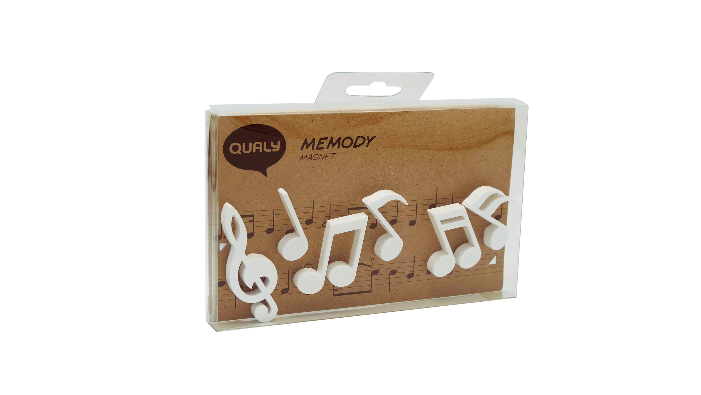 Zestaw 6 magnesów Memody ozdobi powierzchnię każdej lodówki i nada jej muzycznego wymiaru. Twórz swój niepowtarzalny klimat i komponuj otwory według własnego uznania. Magnesy Memody mają kształt różnych nutek z pięciolinii.