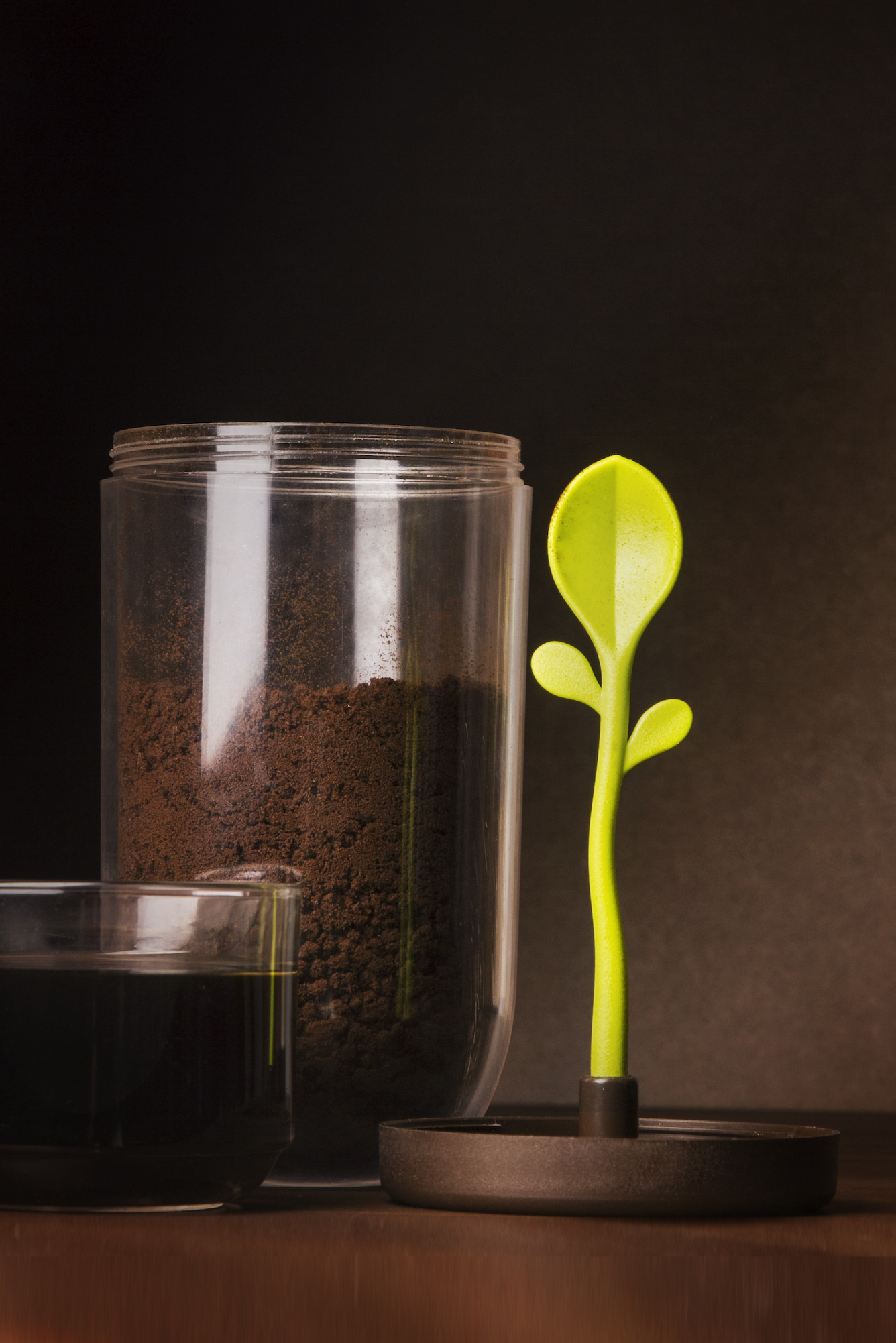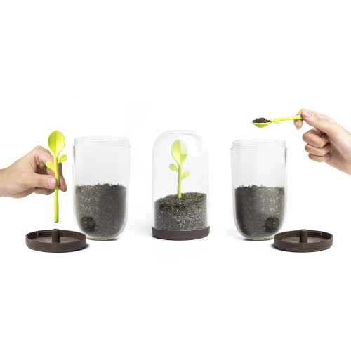 Powitaj naturę w zaciszu swojego domu, dzięki pojemnikowi na przyprawy Sprout Jar. Otwórz pokrywkę kopuły i napełnij ją mieloną kawą, liśćmi herbaty, fasolą lub dowolną wybraną przyprawą. Roślinka, która stoi pośrodku kopuły i działa jak łyżka, jest gotowa Ci służyć.