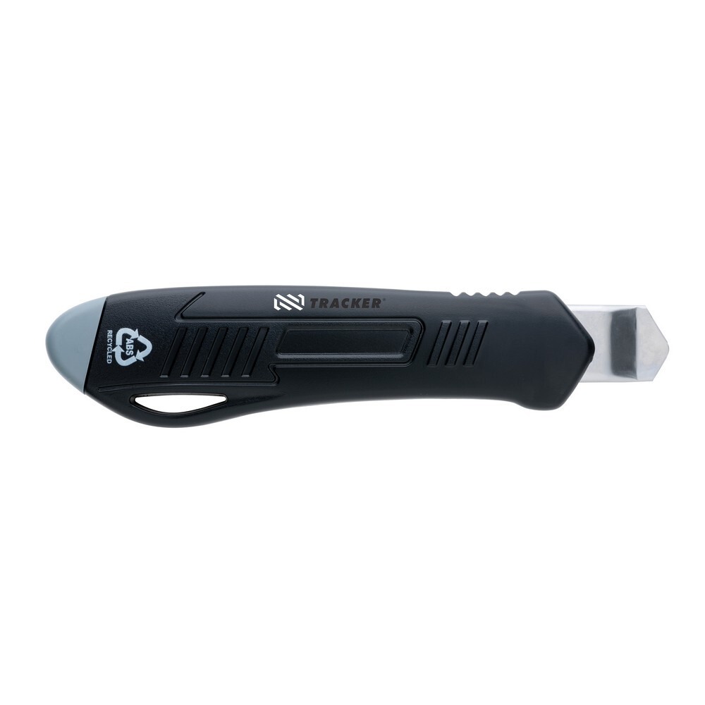 Nóż do tapet, wymienne ostrza, wykonany z ABS z recyklingu z certyfikatem RCS, łamane ostrze ze stali nierdzewnej, całkowita zawartość materiałów z recyklingu obliczona na podstawie wagi przedmiotu: 36%, produkt jest dostarczany z 1 ostrzem wewnątrz noża oraz 2 ostrzami zapasowymi, w pudełku papieru kraftowego z certyfikatem FSC® mix