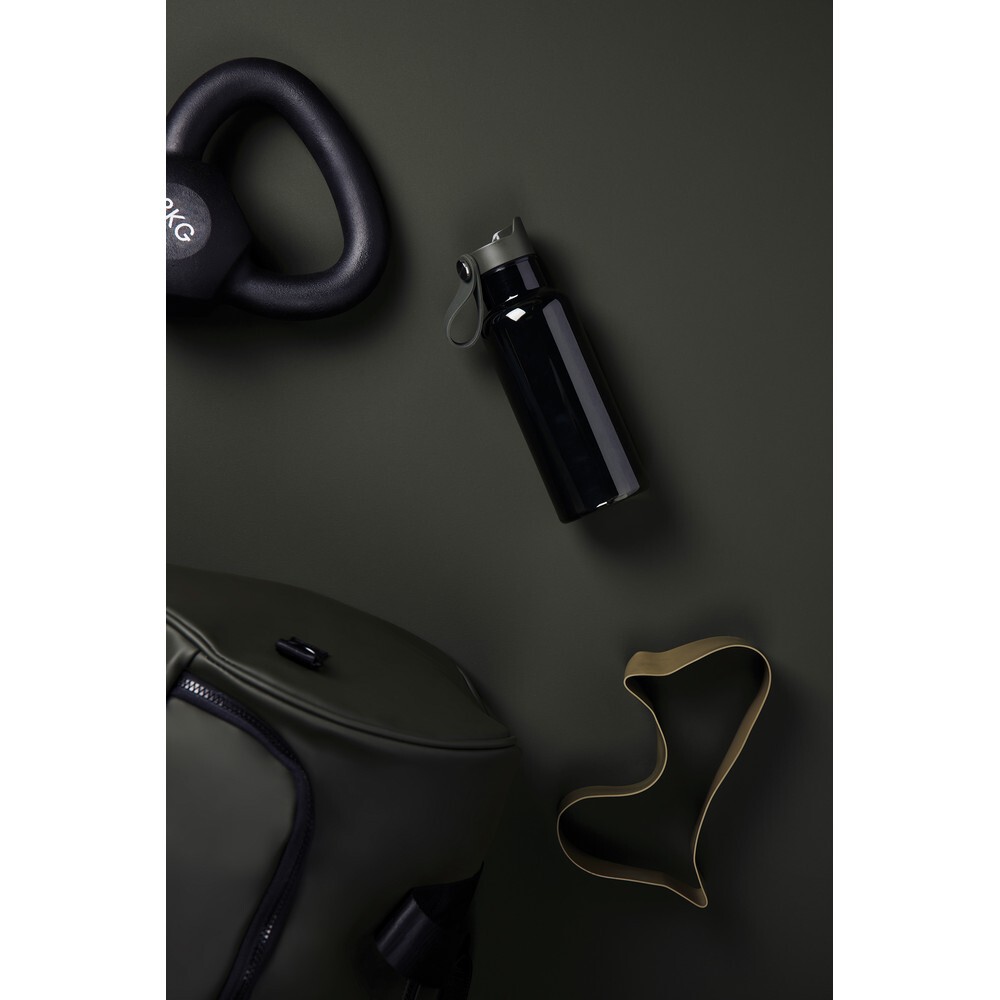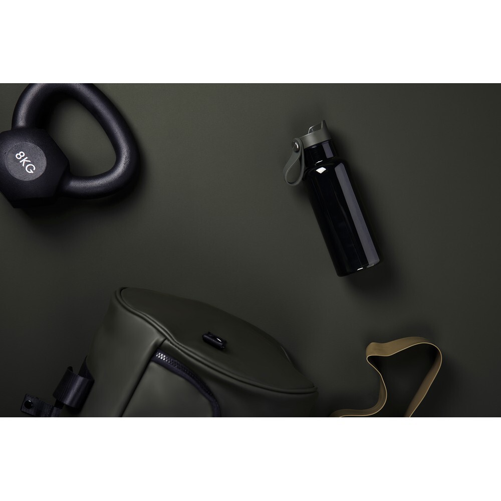 Butelka sportowa 600 ml, wykonana z RPET, całkowita zawartość materiałów z recyklingu obliczona na podstawie wagi całkowitej przedmiotu: 63%, nadaje się wyłącznie do zimnych napojów, zalecane mycie ręczne, w pudełku z papieru kraftowego z certyfikatem FSC®