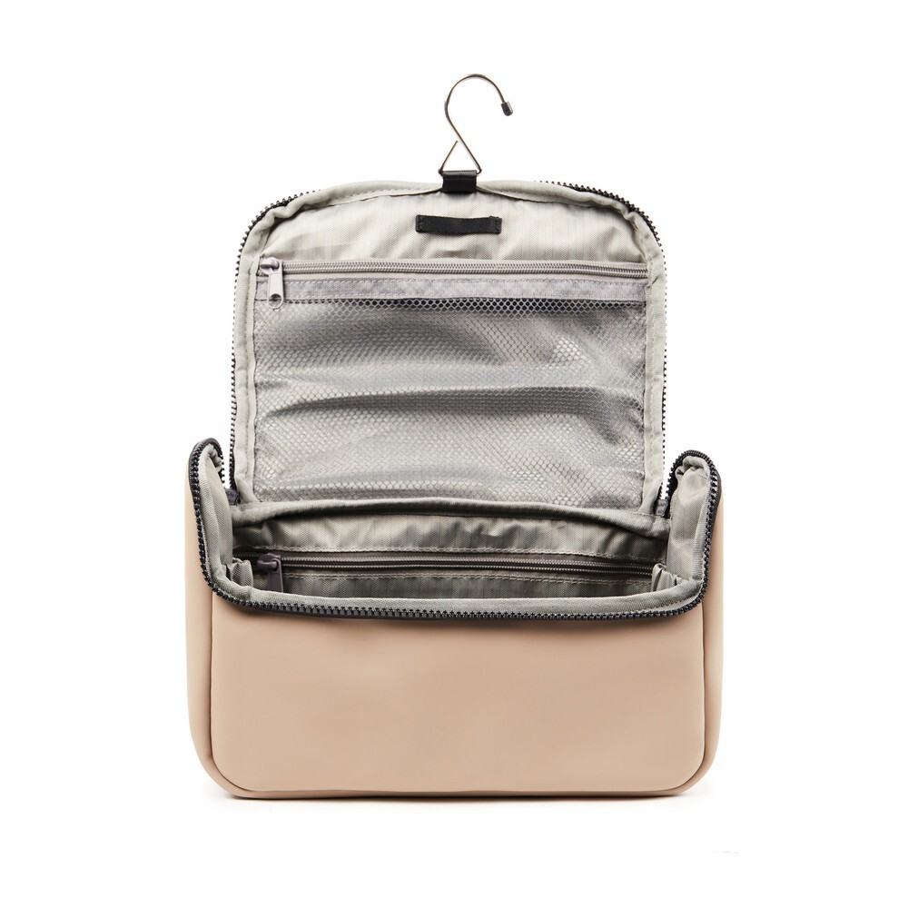 Kosmetyczka, wykonana z wodoodpornego nubuku i PU, mniejsze kieszenie wewnątrz, posiada haczyk do zawieszenia, łatwa w czyszczeniu
